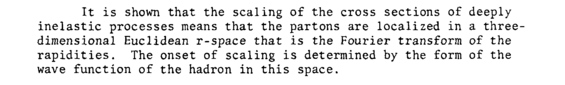 It is shown that the scaling of the cross sections of deeply inelastic processes means that the partons are localized in a three-dimensional Euclidean r-space that is the Fourier transform of the rapidities. The onset of scaling is determined by the form of the wave function of the hadron in this space.