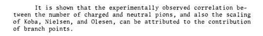 It is shown that the experimentally observed correlation between the number of charged and neutral pions, and also the scaling of Koba, Nielsen, and Olesen, can be attributed to the contribution of branch points.
