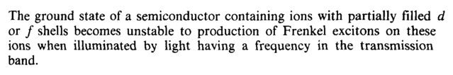 The ground state of a semiconductor containing ions with partially filled d or / shells becomes unstable to production of Frenkel excitons on these ions when illuminated by light having a frequency in the transmission band.