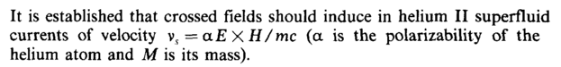 It is established that crossed fields should induce in helium II superfluid currents of velocity vs=aExH/mc (a is the polarizability of the helium atom and Μ is its mass).