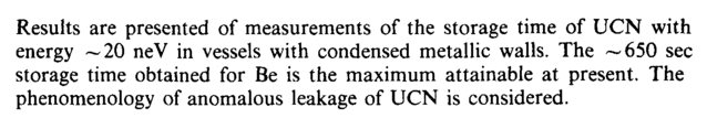 Results are presented of measurements of the storage time of UCN with energy —20 neV in vessels with condensed metallic walls. The —650 sec storage time obtained for Be is the maximum attainable at present. The phenomenology of anomalous leakage of UCN is considered.