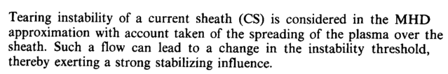 Tearing instability of a current sheath (CS) is considered in the MHD approximation with account taken of the spreading of the plasma over the sheath. Such a flow can lead to a change in the instability threshold, thereby exerting a strong stabilizing influence.
