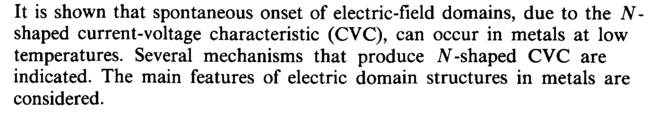 It is shown that spontaneous onset of electric-field domains, due to the N-shaped current-voltage characteristic (CVC), can occur in metals at low temperatures. Several mechanisms that produce N -shaped CVC are indicated. The main features of electric domain structures in metals are considered.