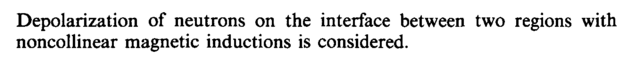 Depolarization of neutrons on the interface between two regions with noncollinear magnetic inductions is considered.