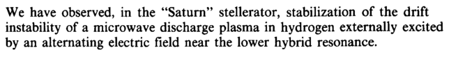 We have observed, in the "Saturn" stellerator, stabilization of the drift instability of a microwave discharge plasma in hydrogen externally excited by an alternating electric field near the lower hybrid resonance.