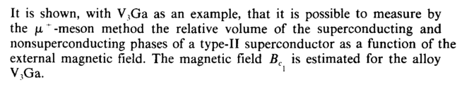 It is shown, with V3Ga as an example, that it is possible to measure by the μ * -meson method the relative volume of the superconducting and nonsuperconducting phases of a type-II superconductor as a function of the external magnetic field. The magnetic field Bc is estimated for the alloy V3Ga. 1
