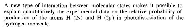 A new type of interaction between molecular states makes it possible to explain quantitatively the experimental data on the relative probability of production of the atoms Η (25) and Η (2p) in photodissociation of the hydrogen molecule.