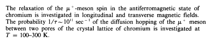 The relaxation of the μ+-meson spin in the antiferromagnetic state of chromium is investigated in longitudinal and transverse magnetic fields. The probability 1/τ~ 1011 sec-1 of the diffusion hopping of the μ+ meson between two pores of the crystal lattice of chromium is investigated at Τ = 100-300 к.