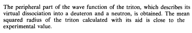 The peripheral part of the wave function of the triton, which describes its virtual dissociation into a deuteron and a neutron, is obtained. The mean squared radius of the triton calculated with its aid is close to the experimental value.
