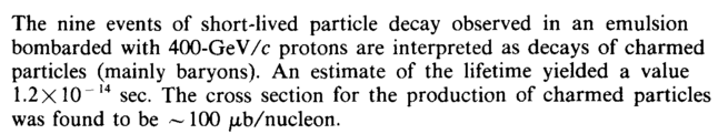 The nine events of short-lived particle decay observed in an emulsion bombarded with 400-GeV/c protons are interpreted as decays of charmed particles (mainly baryons). An estimate of the lifetime yielded a value 1.2x10" 14 sec. The cross section for the production of charmed particles was found to be —100 μο/nucleon.