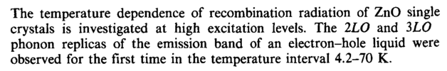 The temperature dependence of recombination radiation of ZnO single crystals is investigated at high excitation levels. The 2LO and 3LO phonon replicas of the emission band of an electron-hole liquid were observed for the first time in the temperature interval 4.2-70 K.