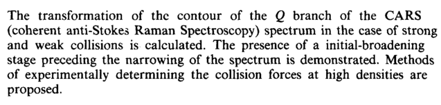 The transformation of the contour of the Q branch of the CARS (coherent anti-Stokes Raman Spectroscopy) spectrum in the case of strong and weak collisions is calculated. The presence of a initial-broadening stage preceding the narrowing of the spectrum is demonstrated. Methods of experimentally determining the collision forces at high densities are proposed.