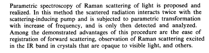 Parametric spectroscopy of Raman scattering of light is proposed and realized. In this method the scattered radiation interacts twice with the scattering-inducing pump and is subjected to parametric transformation with increase of frequency, and is only then detected and analyzed. Among the demonstrated advantages of this procedure are the ease of registration of forward scattering, observation of Raman scattering excited in the IR band in crystals that are opaque to visible light, and others.