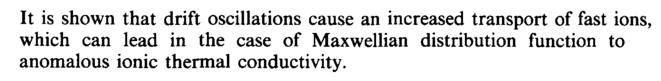 It is shown that drift oscillations cause an increased transport of fast ions, which can lead in the case of Maxwellian distribution function to anomalous ionic thermal conductivity.