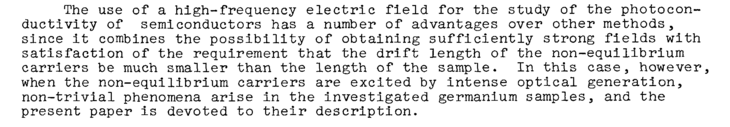The use of a high-frequency electric field for the study of the photoconductivity of semiconductors has a number of advantages over other methods, since it combines the possibility of obtaining sufficiently strong fields with satisfaction of the requirement that the drift length of the non-equilibrium carriers be much smaller than the length of the sample. In this case, however when the non-equilibrium carriers are excited by intense optical generation, non-trivial phenomena arise in the investigated germanium samples, and the present paper is devoted to their description.