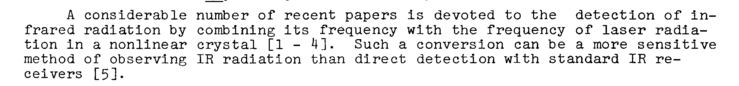 A considerable number of recent papers is devoted to the detection of infrared radiation by combining its frequency with the frequency of laser radiation in a nonlinear crystal [1 4]. Such a conversion can be a more sensitive method of observing IR radiation than direct detection with standard IR receivers [5] ·