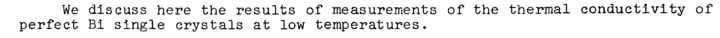 We discuss here the results of measurements of the thermal conductivity of perfect Bi single crystals at low temperatures.