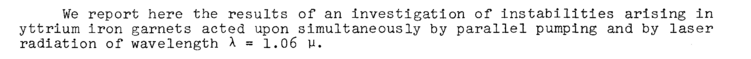 We report here the results of an investigation of instabilities arising in yttrium iron garnets acted upon simultaneously by parallel pumping and by laser radiation of wavelength λ = 1.06 v.