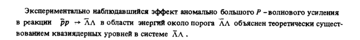 Экспериментально наблюдавшийся эффект аномально большого Ρ -волнового усиления в реакции рр ЛЛ в области энергий около порога ЛЛ объяснен теоретически существованием квазиядерных уровней в системе ЛЛ .