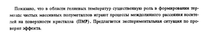 Показано, что в области гелиевых температур существенную роль в формировании тер-моэдс чистых массивных полуметаллов играют процессы междолинного рассеяния носителей на поверхности кристалла (ПМР). Предлагается экспериментальная ситуация по проверке эффекта.
