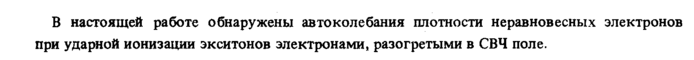 В настоящей работе обнаружены автоколебания плотности неравновесных электронов при ударной ионизации экситонов электронами» разогретыми в СВЧ поле.