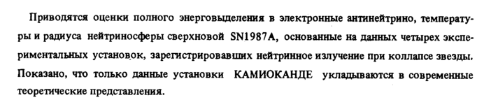 Приводятся оценки полного энерговыделения в электронные антинейтрино, температуры и радиуса нейтриносферы сверхновой SN1987A, основанные на данных четырех экспериментальных установок, зарегистрировавших нейтринное излучение при коллапсе звезды. Показано, что только данные установки КАМИОКАНДЕ укладываются в современные теоретические представления.