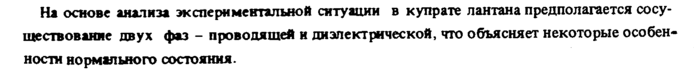 На основе анализа экспериментальной ситуации в купрате лантана предполагается сосуществование двух фаз проводящей и диэлектрической, что объясняет некоторые особенности нормального состояния.