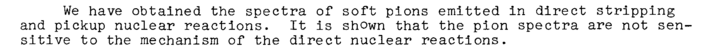 We have obtained the spectra of soft pions emitted in direct stripping and pickup nuclear reactions. It is shown that the pion spectra are not sensitive to the mechanism of the direct nuclear reactions.