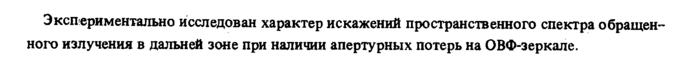 Экспериментально исследован характер искажений пространственного спектра обращенного излучения в дальней зоне при наличии апертурных потерь на ОВФ-зеркале.
