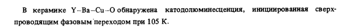 В керамике Y-Ba-Cu-О обнаружена катодолюминесценция, инициированная сверхпроводящим фазовым переходом при 105 К.
