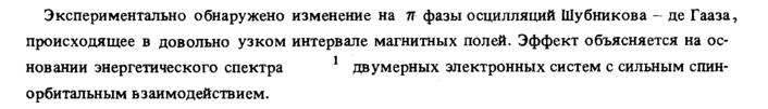 Экспериментально обнаружено изменение на η фазы осцилляций Шубникова де Гааза, происходящее в довольно узком интервале магнитных полей. Эффект объясняется на основании энергетического спектра 1 двумерных электронных систем с сильным спин-орбитальным взаимодействием.