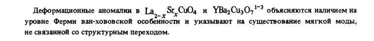 Деформационные аномалии в La Sr^CuC^ и YBa2Cu307 ~ объясняются наличием на уровне Ферми ван-хововской особенности и указывают на существование мягкой моды, не связанной со структурным переходом.