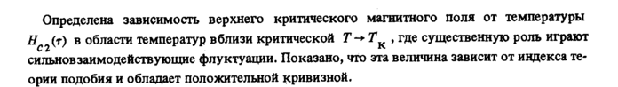 Определена зависимость верхнего критического магнитного поля от температуры Я (г) в области температур вблизи критической Г-* Τ , где существенную роль играют си льнов заимо действующие флуктуации. Показано, что эта величина зависит от индекса теории подобия и обладает положительной кривизной.