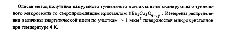 Описан метод получения вакуумного туннельного контакта иглы сканирующего туннельного микроскопа со сверхпроводящим кристаллом УВа2СизО . Измерены распределе2 ~ ния величины энергетической щели по участкам ~ 1 мкм поверхностей микрокристаллов при температуре 4 К.