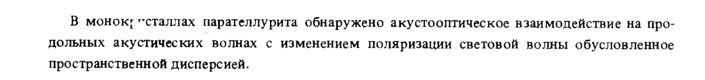 В монокристаллах парателлурита обнаружено акустооптическое взаимодействие на продольных акустических волнах с изменением поляризации световой волны обусловленное пространственной дисперсией.
