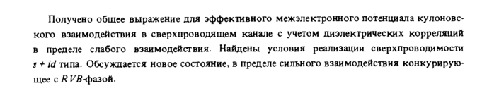 Получено общее выражение для эффективного межэлектронного потенциала кулоново кого взаимодействия в сверхпроводящем канале с учетом диэлектрических корреляций в пределе слабого взаимодействия. Найдены условия реализации сверхпроводимости ί + id типа. Обсуждается новое состояние, в пределе сильного взаимодействия конкурирующее с R РВ-фаэой.