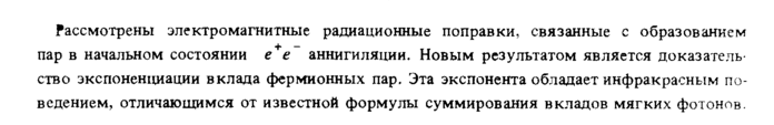 Рассмотрены электромагнитные радиационные поправки, связанные с образованием пар в начальном состоянии е*е аннигиляции. Новым результатом является доказательство экспоненциации вклада фермионных пар. Эта экспонента обладает инфракрасным поведением, отличающимся от известной формулы суммирования вкладов мягких фотонов.