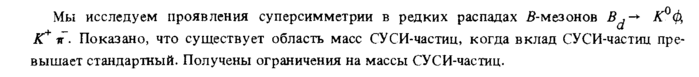 Мы исследуем проявления суперсимметрии в редких распадах ^-мезонов К Ф, К+ ж. Показано, что существует область масс СУСИ-частиц, когда вклад СУСИ-частиц превышает стандартный. Получены ограничения на массы СУСИ-частиц.