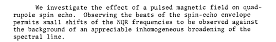 We investigate the effect of a pulsed magnetic field on quad-rupole spin echo. Observing the beats of the spin-echo envelope permits small shifts of the NQR frequencies to be observed against the background of an appreciable inhomogeneous broadening of the spectral line.