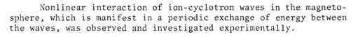 Nonlinear interaction of ion-cyclotron waves in the magneto-sphere, which is manifest in a periodic exchange of energy between the waves, was observed and investigated experimentally.