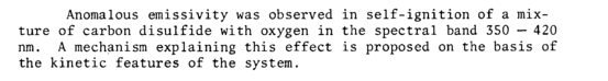 Anomalous emissivity was observed in self-ignition of a mixture of carbon disulfide with oxygen in the spectral band 350 — 420 nm. A mechanism explaining this effect is proposed on the basis of the kinetic features of the system.