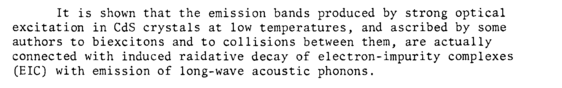 It is shown that the emission bands produced by strong optical excitation in CdS crystals at low temperatures, and ascribed by some authors to biexcitons and to collisions between them, are actually connected with induced raidative decay of electron-impurity complexes (EIC) with emission of long-wave acoustic phonons.