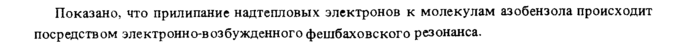 Показано, что прилипание надтепловых электронов к молекулам азобензола происходит посредством электронно-возбужденного фешбаховского резонанса.