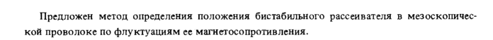 Предложен метод определения положения бистабильного рассеивателя в мезоскопичес-кой проволоке по флуктуациям ее магнетосопротивления.