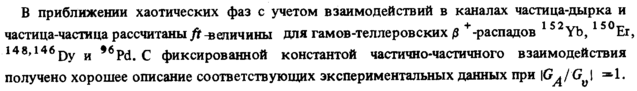 В приближении хаотических фаз с учетом взаимодействий в каналах частица-дырка и частица-частица рассчитаны ft величины для гамов-теллеровских β +-распадов 1 52 Yb, 1 50Ει 14 8,146 Dy и *6pd> с фиксированной константой частично-частичного взаимодействия получено хорошее описание соответствующих экспериментальных данных при Ю^/'О I =*1.