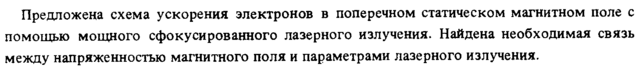 Предложена схема ускорения электронов в поперечном статическом магнитном поле с помощью мощного сфокусированного лазерного излучения. Найдена необходимая связь между напряженностью магнитного поля и параметрами лазерного излучения.