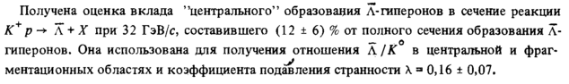Получена оценка вклада "центрального" образования Л-гиперонов в сечение реакции К+ ρ -> Л + X при 32 ГэВ/с, составившего (12 ± 6) % от полного сечения образования Л— . о гиперонов. Она использована для получения отношения Л /К в центральной и фраг-ментационных областях и коэффициента подавления странности λ я 0,16 ± 0,07.
