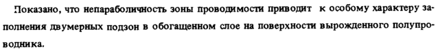 Показано, что непараболичность зоны проводимости приводит к особому характеру за> полнения двумерных подзон в обогащенном слое на поверхности вырожденного полупроводника.