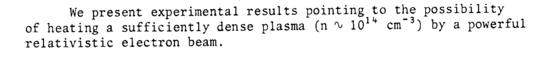We present experimental results pointing to the possibility of heating a sufficiently dense plasma (η ^ 1011+ cm-3) by a powerful relativistic electron beam.