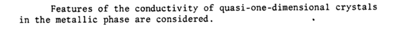 Features of the conductivity of quasi-one-dimensional crystals in the metallic phase are considered.